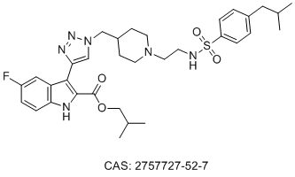 AB668 is a selective, bivalent Casein Kinase 2 (CK2) inhibitor targeting the ATP site and the αD pocket, AB668 inhibits the CK2 holoenzyme with Ki value of 41 nM (IC50=65 nM).