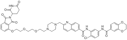 N-(2-Chloro-5-(2,3-dihydrobenzo[b][1,4]dioxine-6-carboxamido)phenyl)-2-((4-(2-(2-(2-((2-(2,6-dioxopiperidin-3-yl)-1,3-dioxoisoindolin-4-yl)oxy)ethoxy)ethoxy)ethyl)piperazin-1-yl)methyl)quinoline-6-carboxamide |