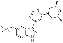 rel-(2S,6R)-2,6-Dimethyl-4-(6-(5-(1-methylcyclopropoxy)-1H-indazol-3-yl)pyrimidin-4-yl)morpholine |